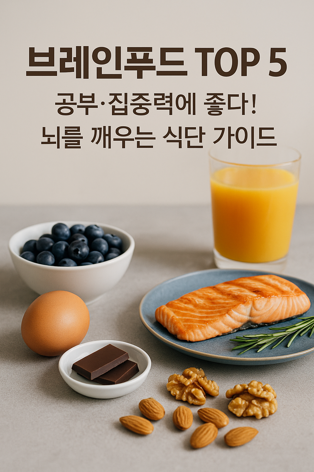 오늘 소개한 브레인푸드 5가지, 매일 식탁에 조금씩만 올려도 기억력과 집중력 향상에 큰 도움이 될 거예요.